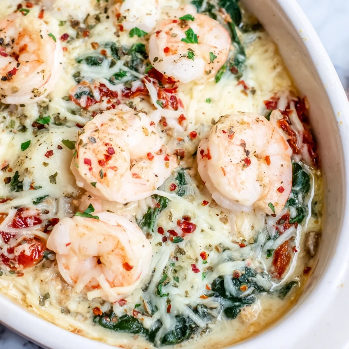 This satisfying bake combines plump shrimp with a velvety cream sauce infused with sun-dried tomatoes, fresh spinach, and aromatic Italian herbs. The dish comes together in just 40 minutes, making it ideal for busy weeknights when you want something special without spending hours in the kitchen. The heavy cream creates a luscious base while Parmesan and mozzarella form a golden, bubbly topping. At only 7 grams of carbohydrates per serving, it fits perfectly into low-carb and gluten-free lifestyles without sacrificing flavor or satisfaction.
