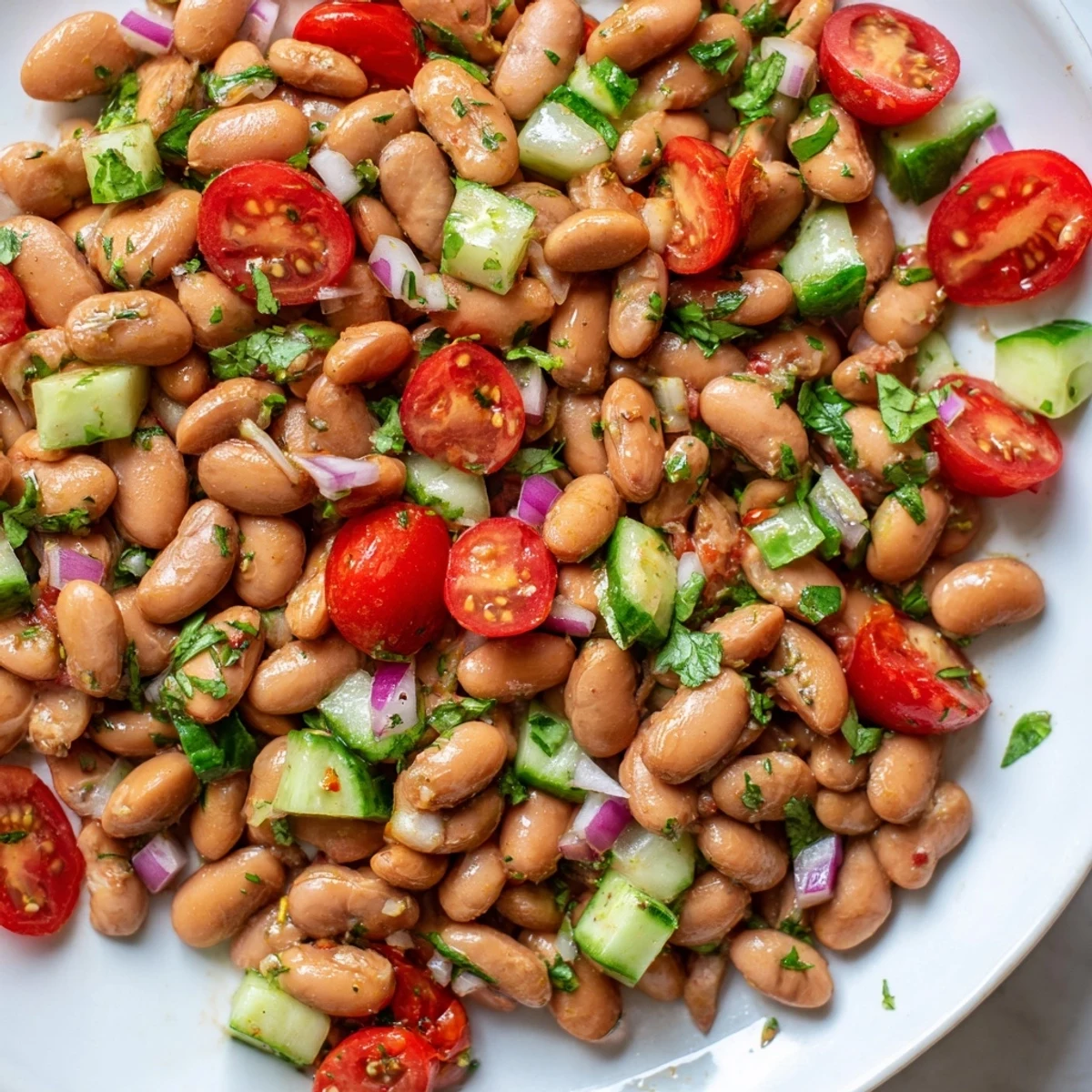 This refreshing dish combines tender pinto beans with crisp cherry tomatoes, cucumber, and bell pepper for texture and color. The zesty lime dressing infused with garlic, cumin, and chili powder ties everything together beautifully. Ready in just 15 minutes with no cooking required.